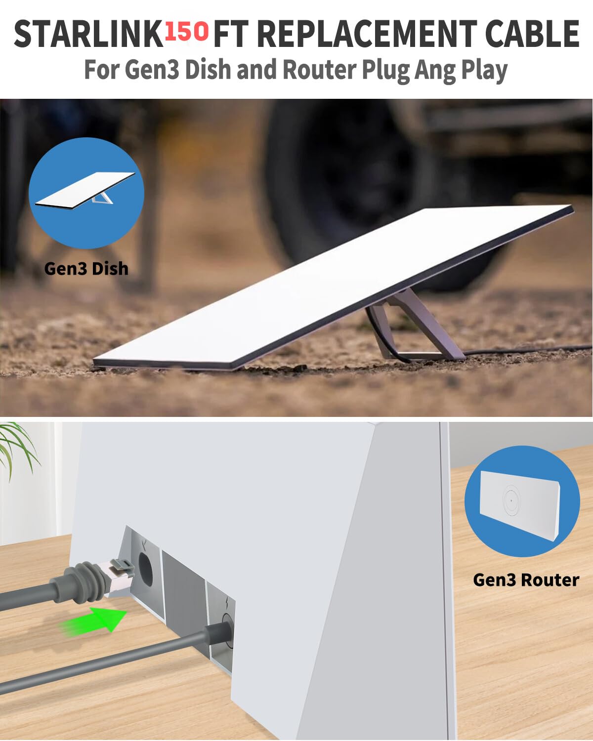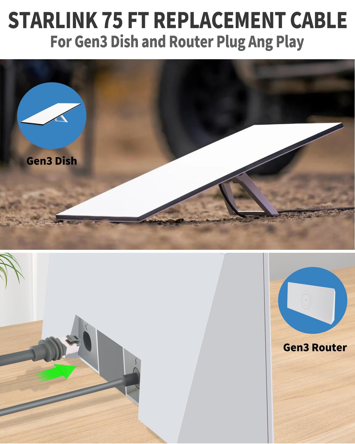 75ft Starlink Gen 3 Cable – 32/50/75/100/150ft Starlink Replacement Cable, High-Speed Satellite Internet Accessory & Extension Cord for Star Link V3 Dish