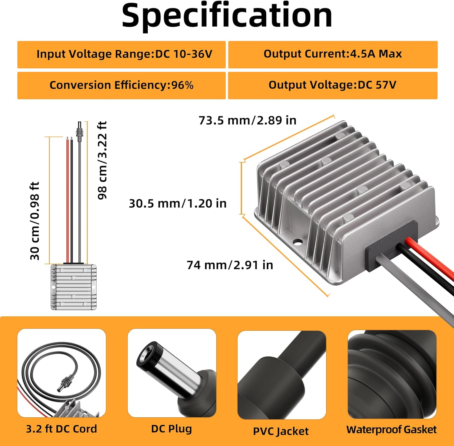 Starlink Gen 3 Step Up Power Cable 12V/24V to 57V 4.5A Power Supply Adapter with DC Plug, High-Efficiency 10V-36V to 57V Step-Up Converter Power Cord for Starlink Gen3 Router