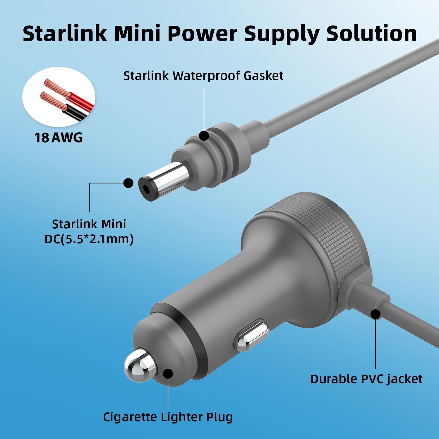 Starlink Mini DC Power Cable Cigarette Lighter Adapter,12V-48V StarLink Mini Car Charger,Heat Dissipation Aluminum Alloy Shell,Waterproof,Built-in Protections,Starlink Mini Power Cable (5M/16FT)
