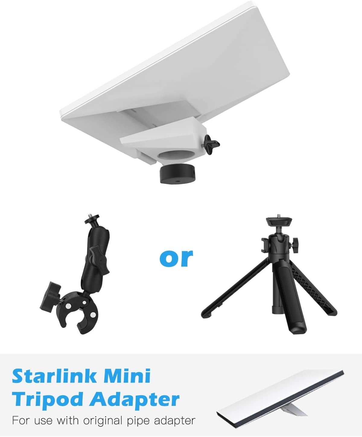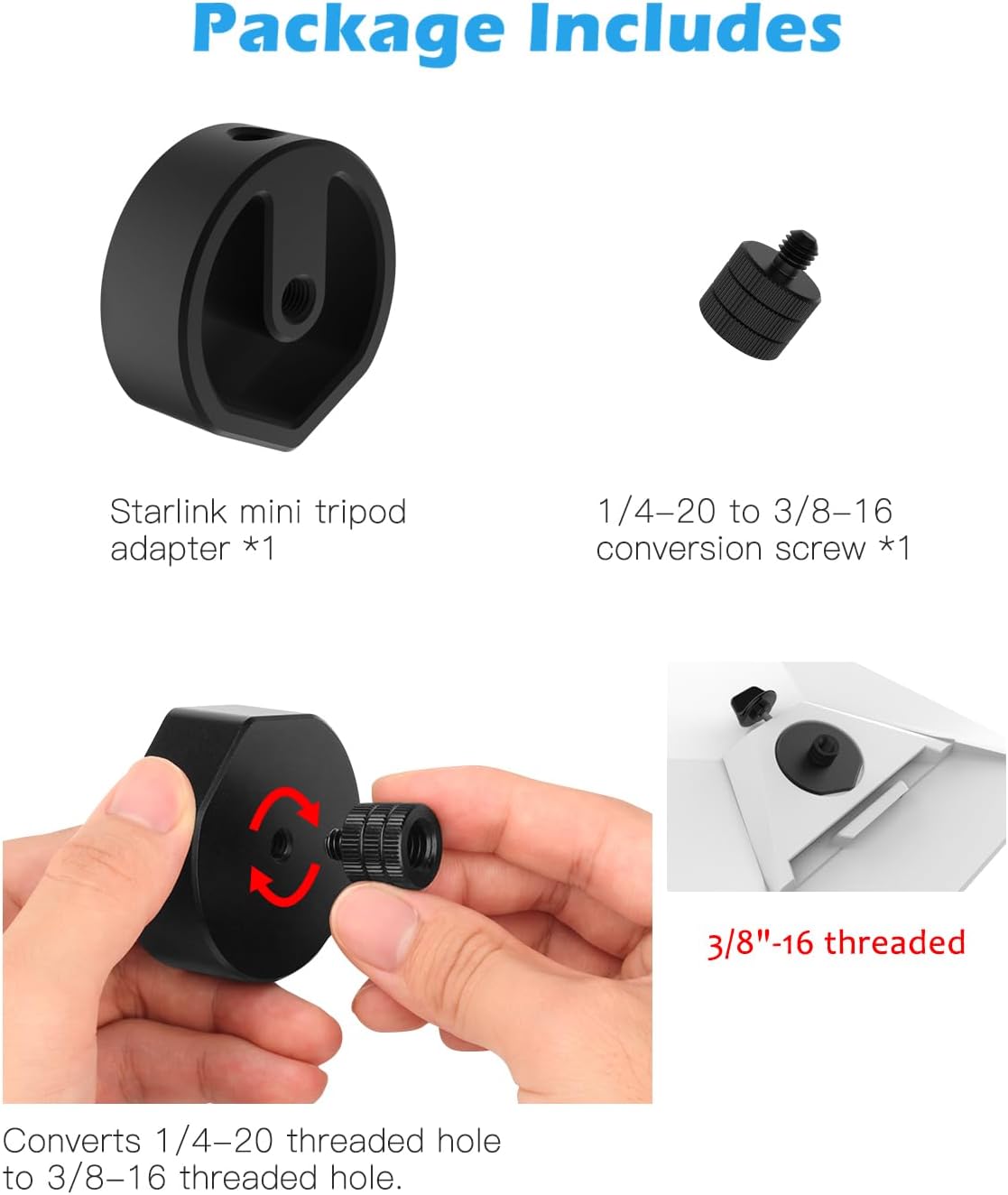 Starlink Mini Tripod Adapter – Aluminum Alloy Tripod Mount Adapter for Starlink Mini – 1/4″~20 and 3/8″~16 Threaded – Enables Tripod, Fixing Clamp or Other Bracket Fixing – Use with Pipe Adapter